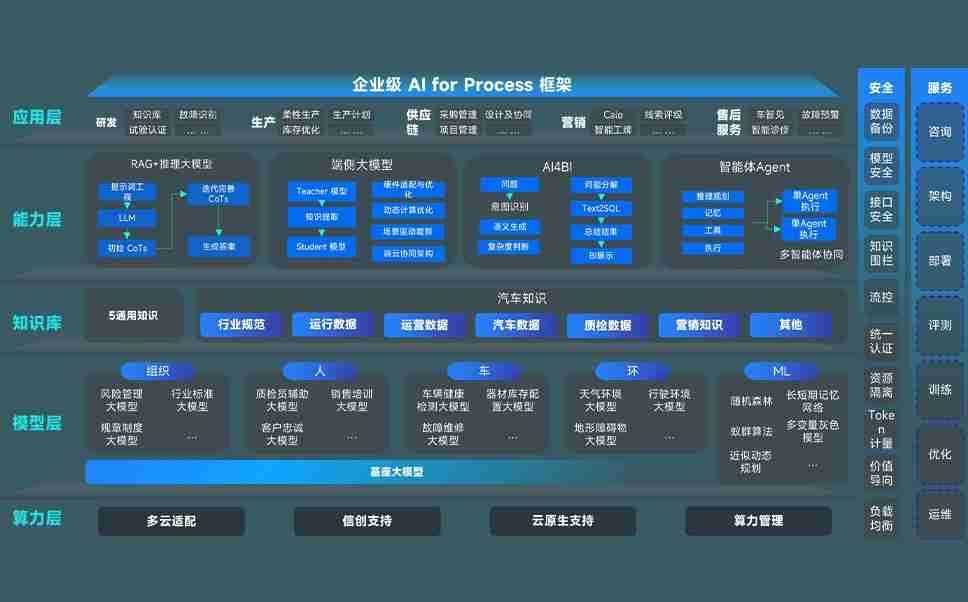端到端的一站式AI工作空间深度融合了从企业战略规划到日常经营的全流程业务板块,,,,定向解决车企内部领域多、、、、部门多、、、、链条长、、、、场景碎片化等难题,,支持车企快速构建以AI为核心的生产力写作体系,,,,实现任务执行与AI能力的无缝集成与交互